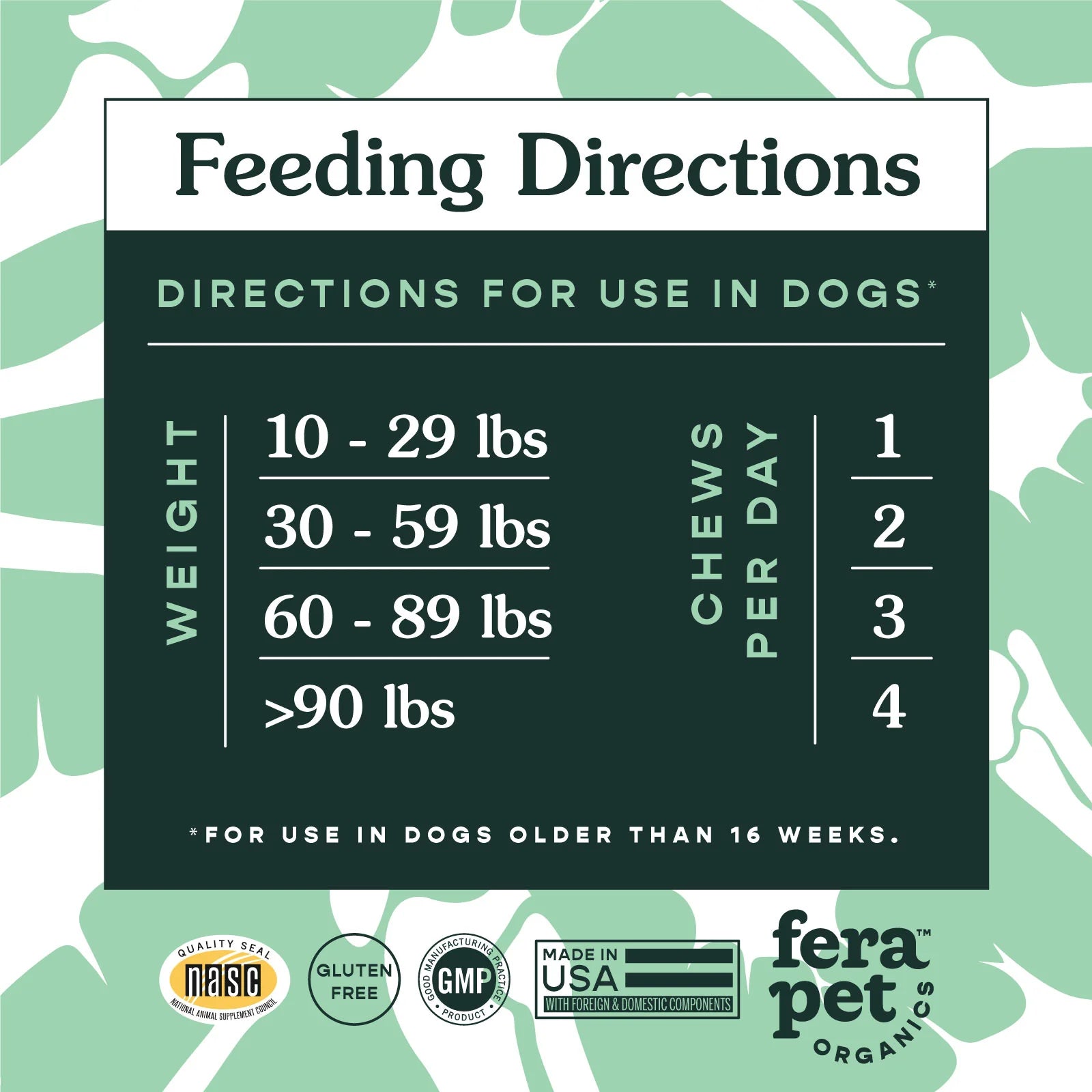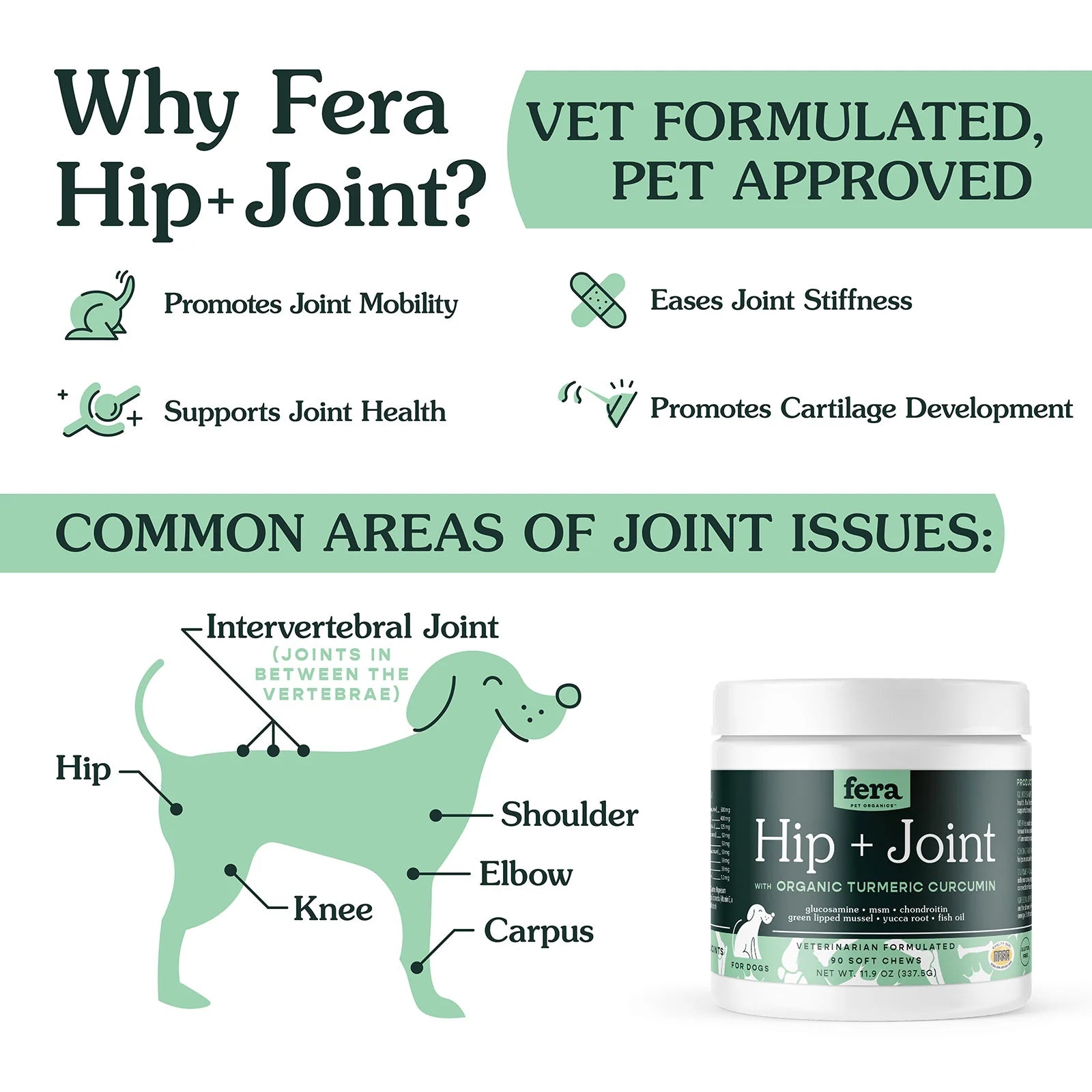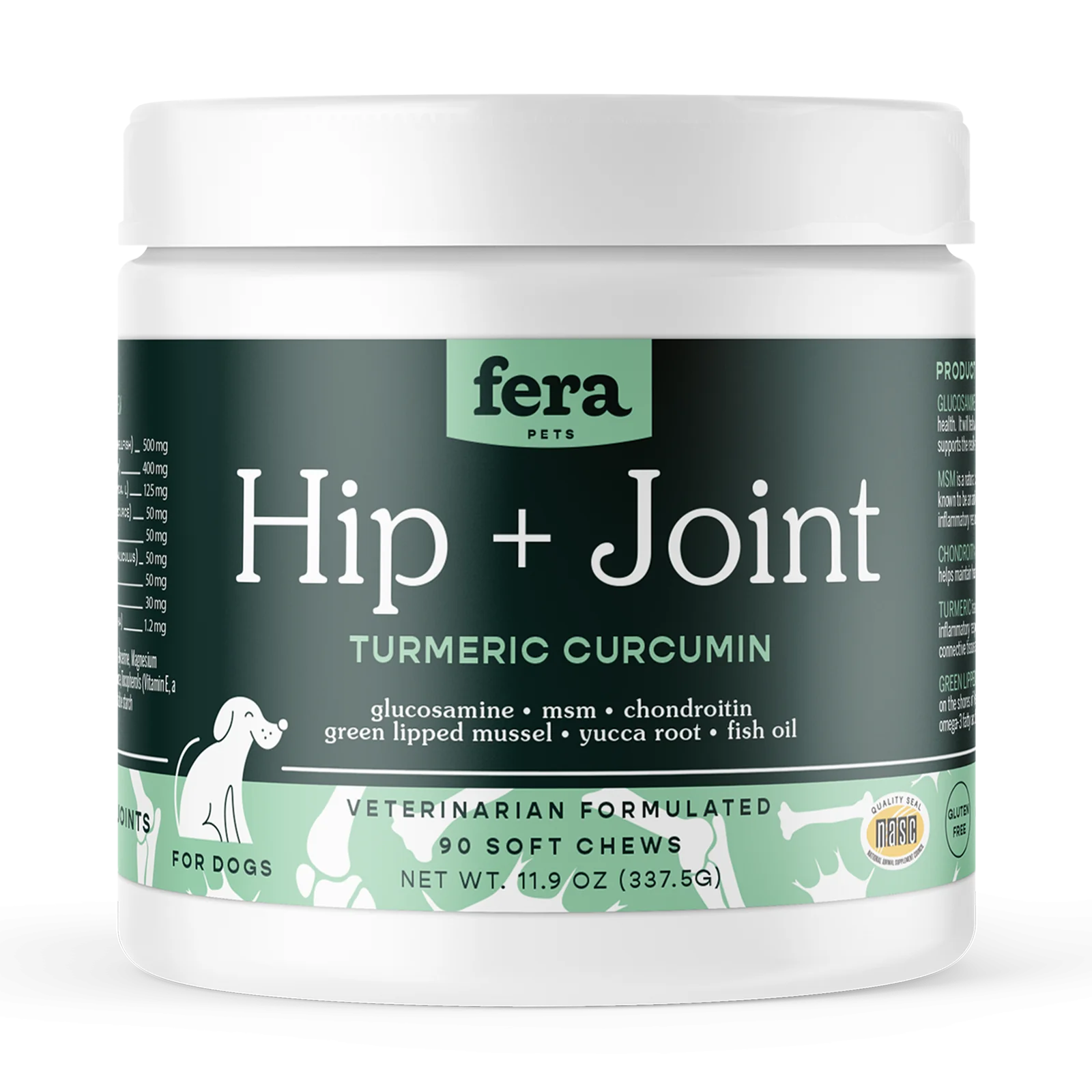 Keep your dog running, jumping, and playing for years to come with Fera Pets' Hip & Joint Support Supplement for dogs. This unique, proprietary blend hip and joint supplement offers the highest amount of active ingredients per soft chew, providing maximum support for dogs of all sizes. Support your dog's joint health naturally with Fera Pets —because every dog deserves a life full of play and adventure!