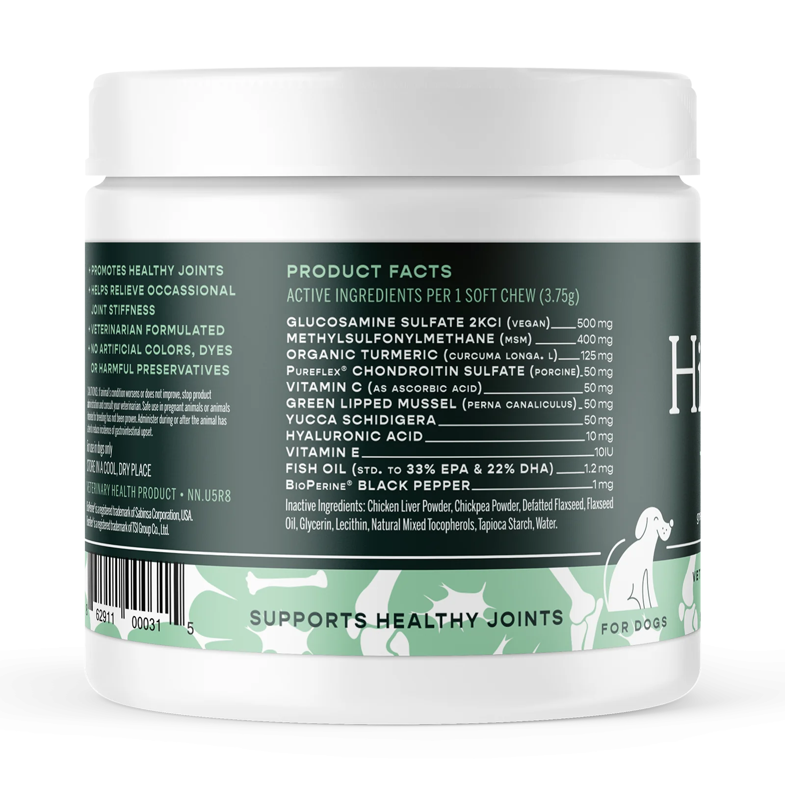 1 in 5 dogs experience joint issues, and early prevention is critical. Whether your dog is active, overweight, or predisposed to hip problems, our supplement is your dog's superpower for long-term mobility. Along with glucosamine, MSM, and chondroitin, this joint support also includes organic turmeric, green-lipped mussel, and yucca root to enhance your pet's mobility and ease joint discomfort.
